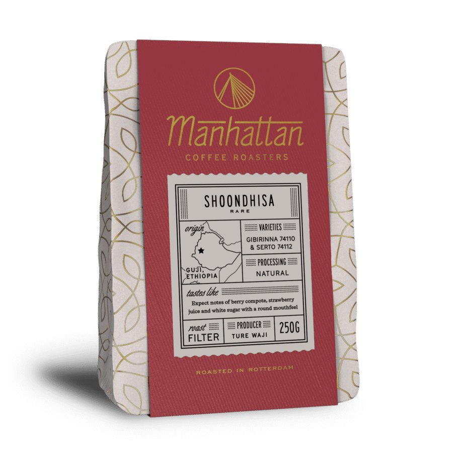 Grown at a high altitude of 1700 masl, this blend of classic Kenyan varieties Ruiru 11, SL-28 and SL-34